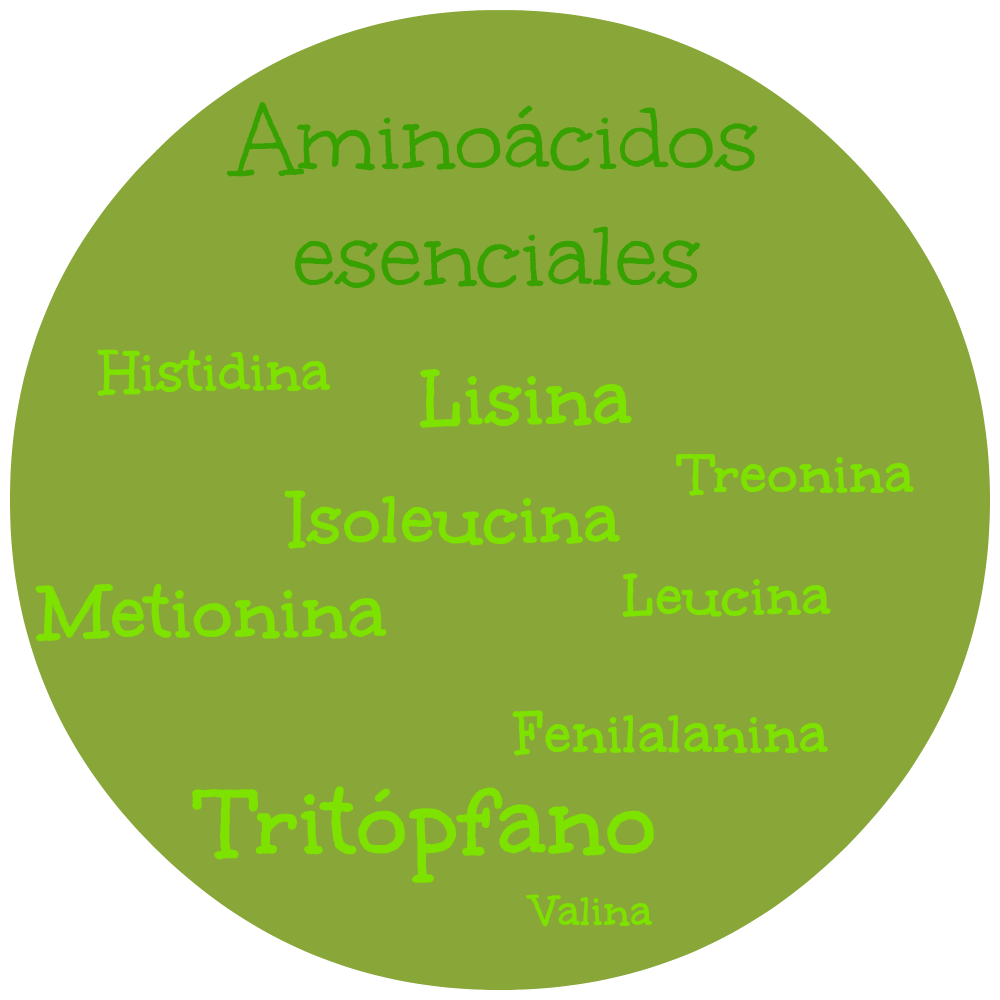– Aminoácidos esenciales : hay 9, estos son los que nuestro propio organismo no puede sintetizar y por lo tanto son lo que tienen que ser aportados mediante nuestra dieta. La carencia de estos aminoácidos en nuestra dieta limita el desarrollo del organismo, ya que no es posible reponer las células de los tejidos que mueren o crear tejidos nuevos, en el caso del crecimiento. Los aminoácidos esenciales son los siguientes :