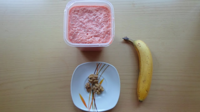 ¿Qué tal ha ido la semana? Con este tiempo solo puede ir bien, verdad? Yo no me puedo quejar. Con tanto sol y tanta piscina el miércoles por la tarde decidí quedarme en casa y me pase la tarde en la cocina haciendo cositas y haciendo fotos para enseñároslas, en medio de todo el lío y después de un buen entreno (acabe muerta) decidí hacerme un batido bien fresquito para reponer fuerzas, así que nada más llegar me preparé el siguiente batido y mientras me duchaba lo dejé en la nevera para tomármelo bien fresquito. ¡Vamos allá!