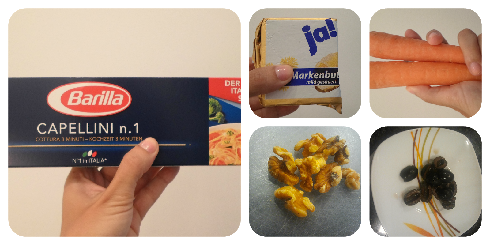 Y así de fácil, una vez estén los espaguetis listos, los escurrimos bien y los colocamos en los platos encima de la mantequilla, encima ponemos las nueces y luego puede ser al gusto podéis poner la zanahoria, las olivas o simplemente sal y orégano.