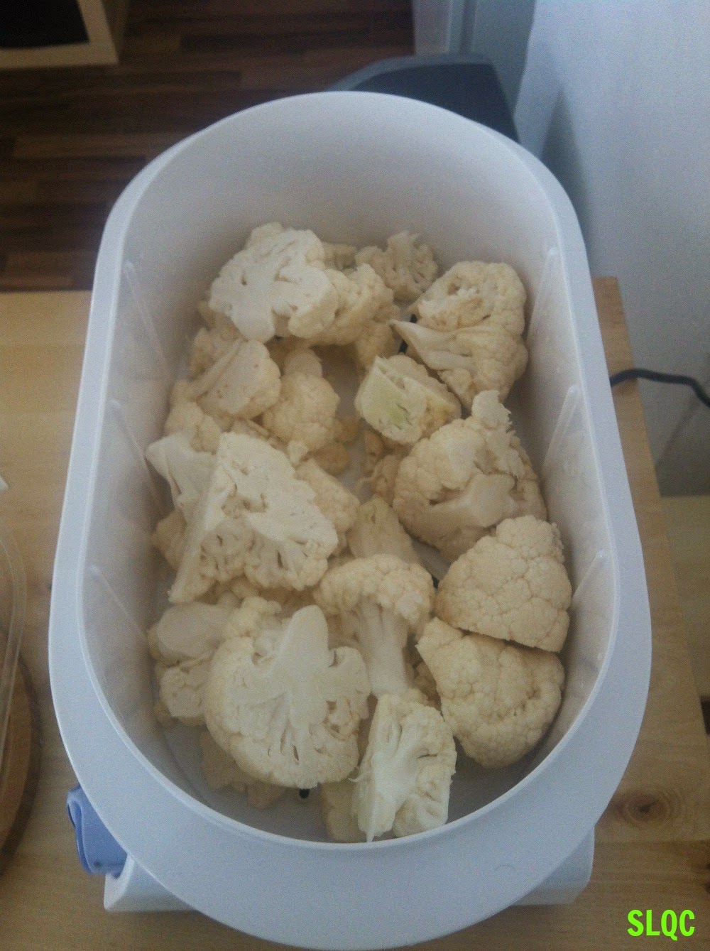 Hoy os traigo mi comida del martes, la verdad es que la coliflor me gusta pero es una de las verduras que creo que es la primera vez que la compro y la cocina, solo recuerdo haberla comido en casa de mi madre, y la cuestión es que no se el motivo. El otro día estaba en el super buscando alguna verdura decente que no fuese los calabacines o las berenjenas de siempre y vi esta coliflor y me dije ¿porque no?. Así que de camino a casa iba pensando en como la iba hacer y no se me ocurro mejor manera de hacerla que con mi nuevo regalito. Y os estaréis preguntando cual es mi nuevo regalito, ¿verdad? Pues no es nada mas ni nada menos que un aparato para cocinar al vapor (lo compramos el sábado y desde el sábado estoy comiendo todo al vapor). La verdad es que estoy encantada, se puede hacer de todo : pescado, carne, verduras, arroz, huevos… ¿que más se puede pedir? es una forma de cocinar muy sana que mantiene las propiedades de los alimentos, una manera rápida, fácil y otra cosa muy importante que apenas manchas nada.