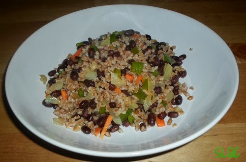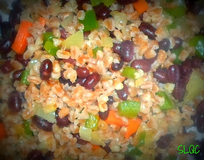 4º. Añadimos las azukis y la quinoa y dejamos unos minutos a fuego lento