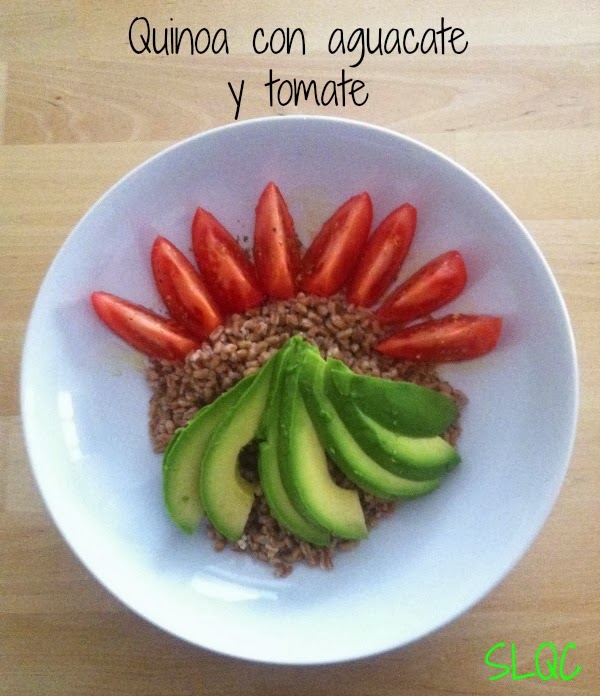 Y dicho todo esto me dejo de enrollar y os traigo el plato de hoy. Os explico, este plato fue mi comida del domingo después de un rodaje corto y ejercicio en casa. La verdad es que lo hice con los restos que tenía por la cocina, puesto que a mi pareja le hice arroz a la cubana y no había arroz para dos, así que me puse a buscar y encontré un poco de quinoa, un aguacate y un tomate y así me plante frente a este super plato.