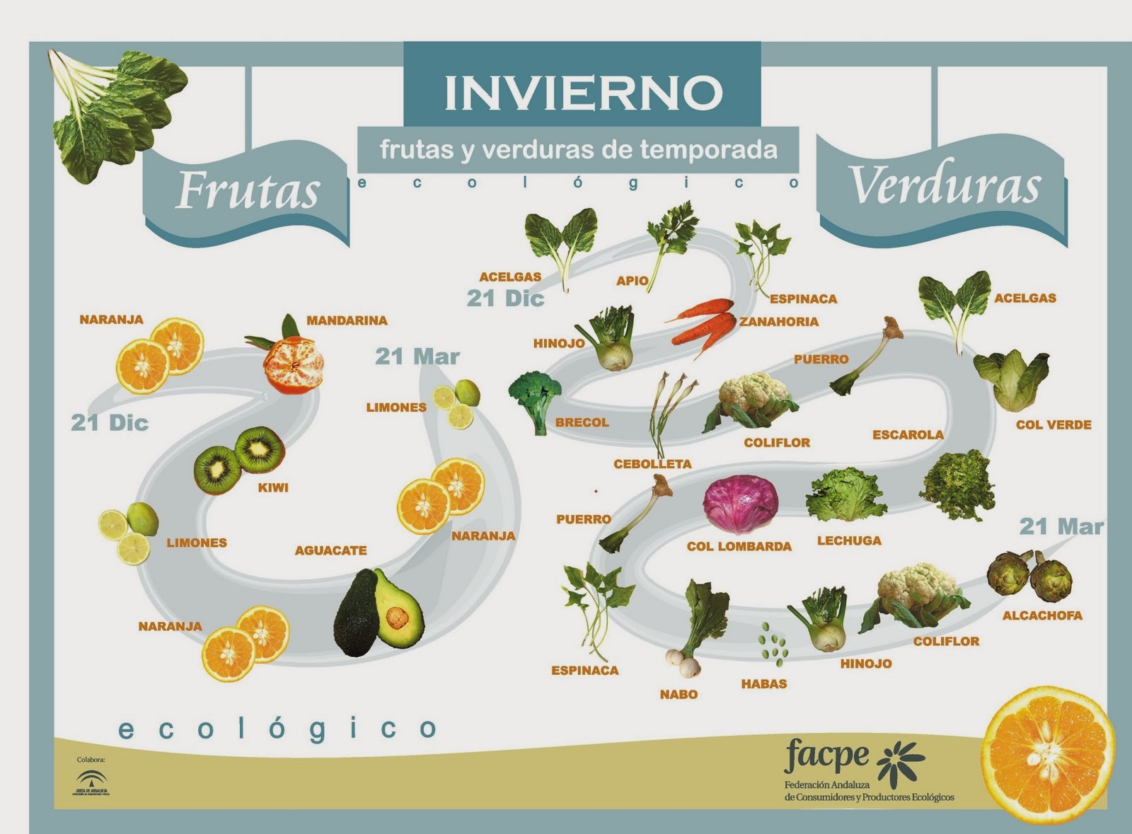 Hoy no es día de publicar, pero poniendo un poco de orden en el ordenador he encontrado este cartel y creo que nunca va mal recordar que frutas y verduras son de temporada. Recordad que es mucho mejor consumir todos aquellos productos que son de temporada ya que así nos aseguramos de que tengan todas sus propiedades y así poder obtener todos sus beneficios. Si compramos frutas y verduras que no son de temporada a parte de pagarlas más caras estaremos consumiendo alimentos que no nos aportaran todos sus beneficios puesto que o vienen de muy lejos o vienen de estar en neveras durante mucho tiempo y ya han perdido todas sus propiedades y evidentemente su sabor deja mucho de desear, así que aquí os dejo la tabla para que os sea mucho más fácil elaborar vuestra lista de la compra en condiciones.